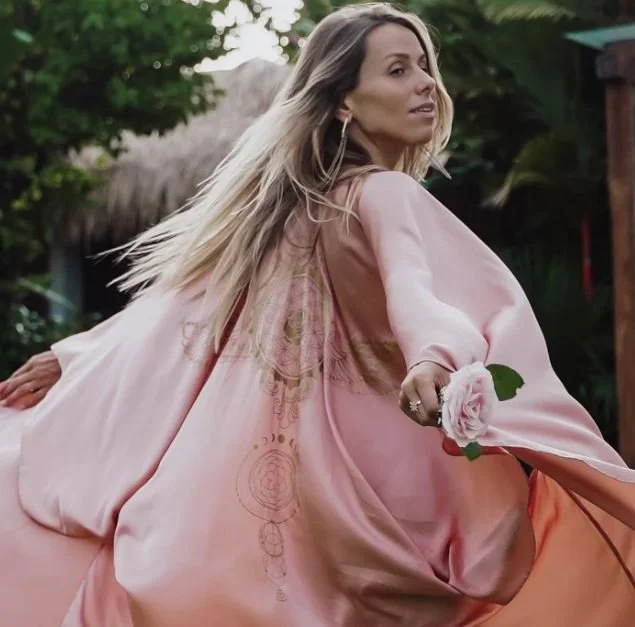 Wrapped in soft pink, white, and gold, this silk veil bears the essence of Goddess Isis and the ancient temple codes inviting you to awaken your intuitive heart, heal with sacred feminine strength, and embody the quiet power of a goddess.